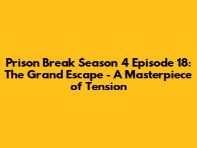 Alright guys, gather 'round because we're diving deep into Prison Break Season 4 Episode 18, aptly titled "The Grand Escape." If you thought the series had already peaked, well, buckle up, because this episode is an absolute rollercoaster of intense moments, shocking twists, and the kind of nail-biting suspense that made us fall in love with this show in the first place. We're talking about the final stretch, the endgame, where every decision matters and the stakes couldn't possibly be higher. Michael and Lincoln, along with their ragtag crew, are in the thick of it, facing off against The Company and its shadowy figures who have been pulling the strings from the very beginning. This episode isn't just about escaping; it's about liberation, about finally dismantling the corrupt entity that has caused them so much pain and suffering. The writing here is phenomenal, weaving together intricate plots and character arcs that have been developing over four long, dramatic seasons. You can feel the pressure mounting with every scene, every whispered conversation, and every daring maneuver. The Prison Break Season 4 Episode 18 writers really knew how to keep us on the edge of our seats, making us question who to trust and what would happen next. It’s a testament to the show’s enduring appeal that even in its later seasons, it could deliver such a powerful and engaging narrative. We see our beloved characters pushed to their absolute limits, forced to make impossible choices that will undoubtedly have lasting consequences. The sheer audacity of their plans, coupled with the ever-present threat of discovery, creates a dynamic tension that is almost palpable. This episode is a masterclass in storytelling, showcasing the brilliance of a show that consistently delivered on its promise of high-stakes drama and intricate plotting. It’s a crucial turning point, setting the stage for the explosive conclusion we’re all anticipating. So, grab your popcorn, get comfy, and let’s break down exactly why "The Grand Escape" is such a pivotal and unforgettable installment in the Prison Break saga. It’s more than just an episode; it’s a cornerstone of the final act, solidifying its place as a fan favorite for its sheer brilliance and unrelenting pace.