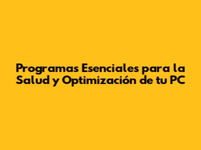 Programas Esenciales Para La Salud Y Optimización De Tu PC