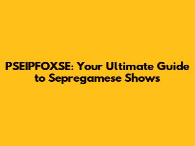 PSEIPFOXSE: Your Ultimate Guide To Sepregamese Shows