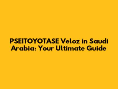 PSEITOYOTASE Veloz In Saudi Arabia: Your Ultimate Guide