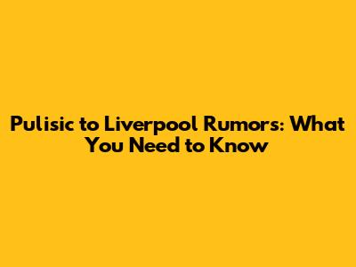Pulisic To Liverpool Rumors: What You Need To Know
