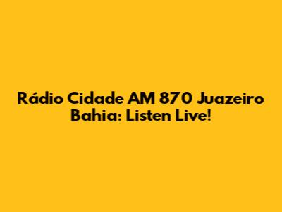 Hey guys! Are you looking for a way to tune into the vibrant sounds of Juazeiro, Bahia? Look no further! This article is your ultimate guide to Rádio Cidade AM 870, bringing you the best of local news, music, and entertainment, all from the heart of Bahia. We'll explore how you can listen live, what makes this radio station so special, and why it's a must-listen for anyone interested in the culture and happenings of Juazeiro.