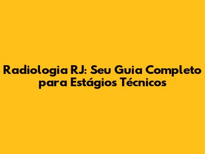 Radiologia RJ: Seu Guia Completo Para Estágios Técnicos