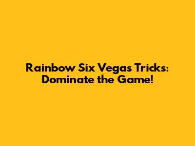 Rainbow Six Vegas Tricks: Dominate The Game!