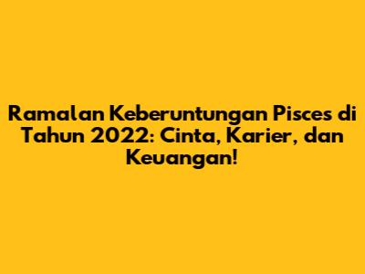 Hai, teman-teman Pisces! Tahun 2022 akan menjadi tahun yang menarik bagi kalian semua. Ramalan zodiak ini akan membahas semua hal penting yang perlu kalian ketahui, mulai dari kehidupan cinta yang penuh gairah, karier yang menjanjikan, hingga keuangan yang stabil. Jadi, siap-siap untuk mengetahui apa saja yang menanti kalian di tahun yang baru ini!