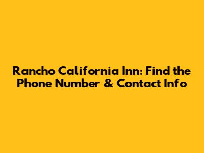 Rancho California Inn: Find The Phone Number & Contact Info