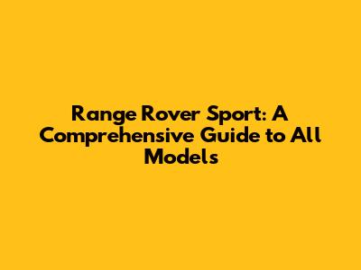 Range Rover Sport: A Comprehensive Guide To All Models