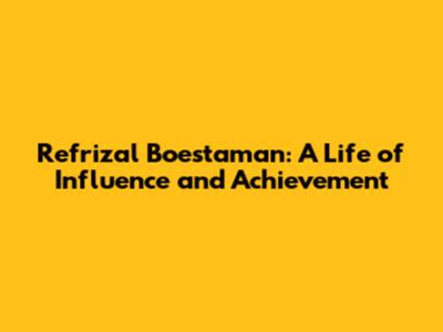 Refrizal Boestaman: A Life Of Influence And Achievement