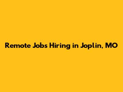 Remote Jobs Hiring In Joplin, MO