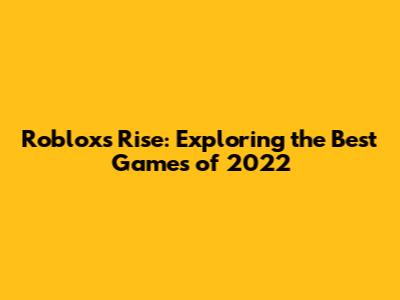 Roblox's Rise: Exploring The Best Games Of 2022