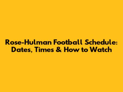 Rose-Hulman Football Schedule: Dates, Times & How To Watch