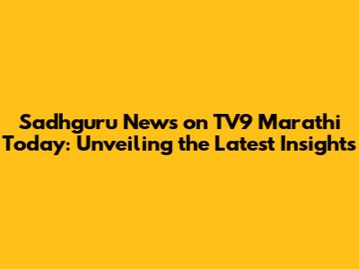 Sadhguru's Insights: Today's News On TV9 Marathi
