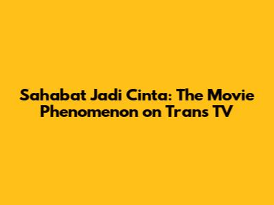 Sahabat Jadi Cinta is a theme that has always resonated with audiences, and when adapted into a film and broadcast on Trans TV, it created a significant buzz. This article delves into why this movie became such a phenomenon, exploring its plot, characters, and the impact it had on viewers. Guys, get ready to dive deep into a world where friendship blossoms into something more, right on your favorite TV channel!