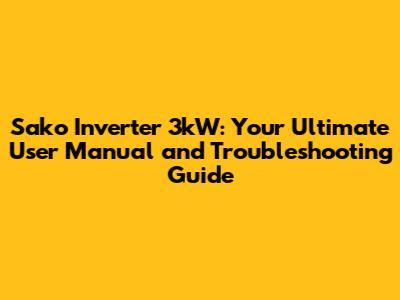 Sako Inverter 3kW: Your Ultimate User Manual And Troubleshooting Guide