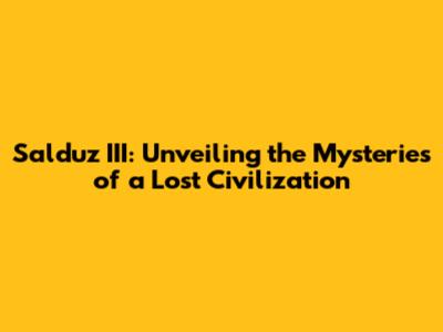 Salduz III: Unveiling The Mysteries Of A Lost Civilization