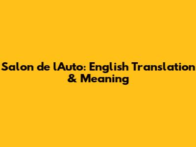 Salon De L'Auto: English Translation & Meaning