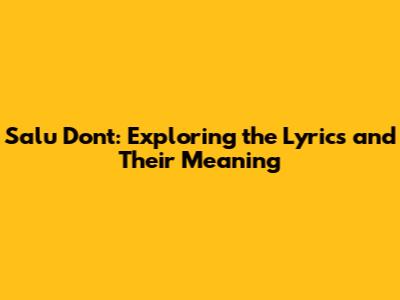 Salu Don't: Exploring The Lyrics And Their Meaning