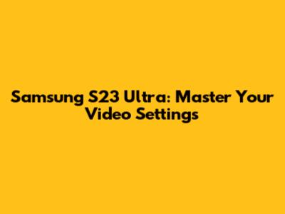 Samsung S23 Ultra: Master Video Settings