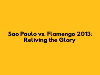 Sao Paulo Vs. Flamengo 2013: Epic Battles And Memorable Moments