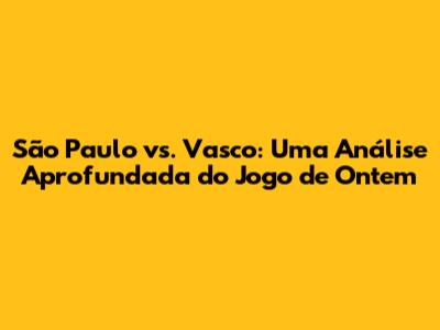 São Paulo Vs. Vasco: Análise Detalhada Do Jogo De Ontem