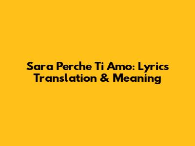 Sara Perche Ti Amo: Lyrics Translation & Meaning