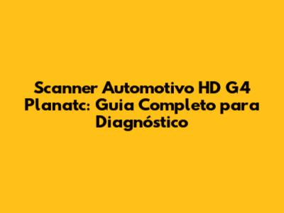 Scanner Automotivo HD G4 Planatc: Guia Completo Para Diagnóstico