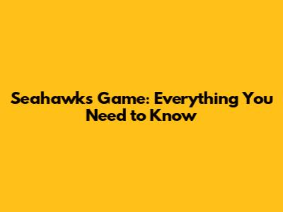 Seahawks Game: Everything You Need To Know