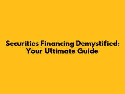 Securities Financing Demystified: Your Ultimate Guide