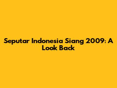 Seputar Indonesia Siang 2009: A Look Back