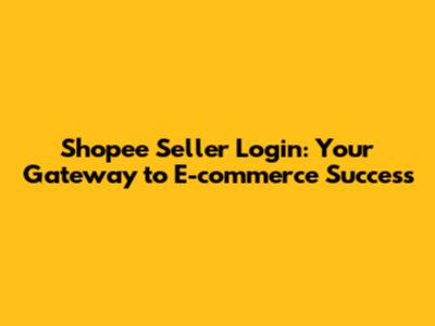 Shopee Seller Login: Your Gateway To E-commerce Success