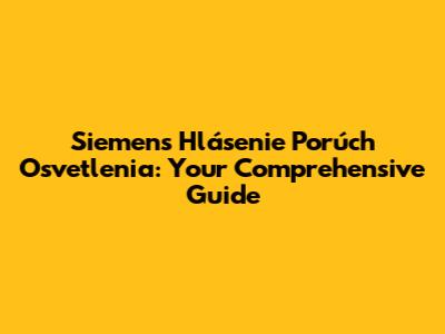 What Exactly is Siemens Hlásenie Porúch Osvetlenia?