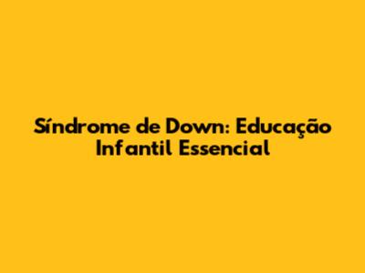 Síndrome De Down: Educação Infantil Essencial