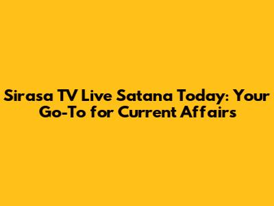 Sirasa TV Live Satana Today: Latest Updates