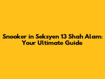 Snooker In Seksyen 13 Shah Alam: Your Ultimate Guide