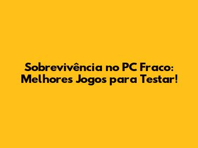 Sobrevivência No PC Fraco: Melhores Jogos Para Testar!