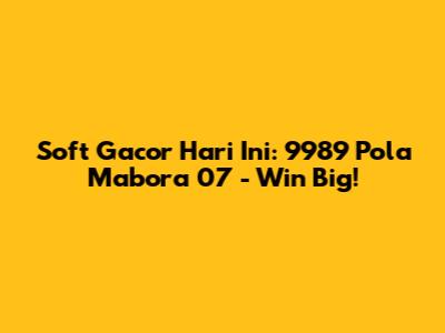 Soft Gacor Today: 9989 Mabora Pattern 07 - Win Big!
