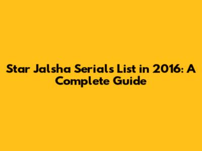 Star Jalsha Serials List In 2016: A Complete Guide