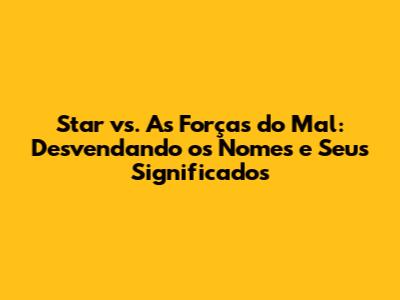 Star vs. As Forças do Mal é uma série que vai além das aventuras interdimensionais e dos personagens cativantes. A escolha dos nomes é um exemplo da atenção aos detalhes e da criatividade dos criadores da série. Cada nome é cuidadosamente selecionado para refletir a personalidade, o destino e o papel de cada personagem na narrativa.