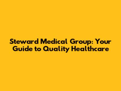 Steward Medical Group: Your Guide To Quality Healthcare