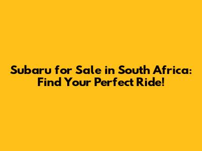 Subaru For Sale In South Africa: Find Your Perfect Ride!