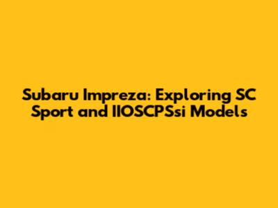 Hey Subaru enthusiasts! Let's dive deep into the world of the Subaru Impreza, specifically focusing on the SC Sport and models related to the rather cryptic term "IIOSCPSsi." If you're scratching your head about what IIOSCPSsi means, don't worry; you're not alone! We'll break it down and explore what it might refer to within the Impreza context, while giving the spotlight to the sporty SC variant.