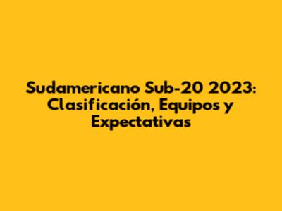 Sudamericano Sub-20 2023: Clasificación, Equipos Y Expectativas
