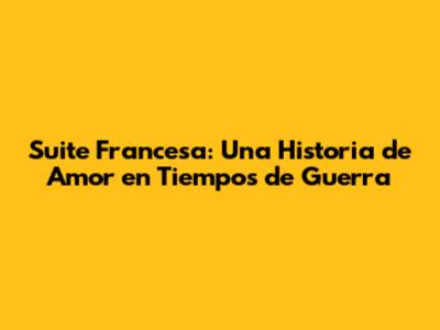 Suite Francesa: Una Historia De Amor En Tiempos De Guerra