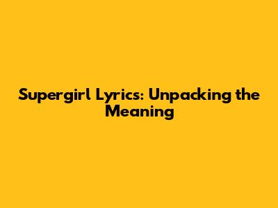 Supergirl Lyrics: Unpacking The Meaning