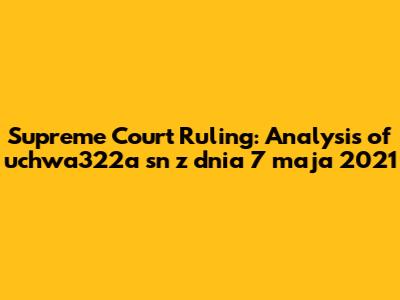Supreme Court Ruling: Analysis Of Uchwa322a Sn Z Dnia 7 Maja 2021