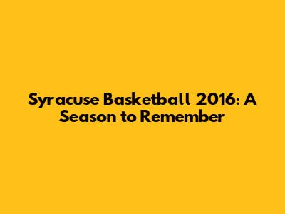 Syracuse Basketball 2016: A Season To Remember