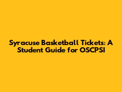Syracuse Basketball Tickets: Student Guide For OSCPSI