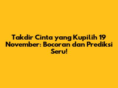 Guys, siap-siap ya buat episode terbaru Takdir Cinta yang Kupilih yang tayang 19 November! Pasti udah pada penasaran banget kan sama kelanjutan kisah cinta segitiga yang bikin greget ini? Kali ini, kita bakal kupas tuntas bocoran episode dan prediksi yang mungkin terjadi, biar kalian gak ketinggalan momen-momen pentingnya. Jadi, siapin camilan kalian, yuk kita selami lebih dalam apa yang bakal terjadi di episode kali ini!