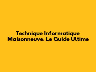 Technique Informatique Maisonneuve: Guide Complet