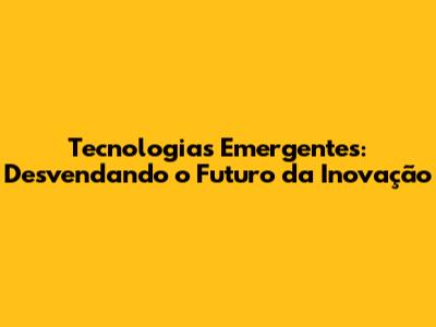 Tecnologias Emergentes: O Futuro Da Inovação